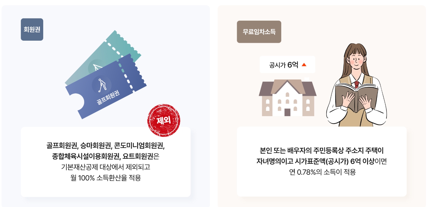 - 무료임차소득: 자녀 명의 고가 주택(시가표준액 6억 이상) 거주 시 연 0.78%가 소득으로 환산됩니다.