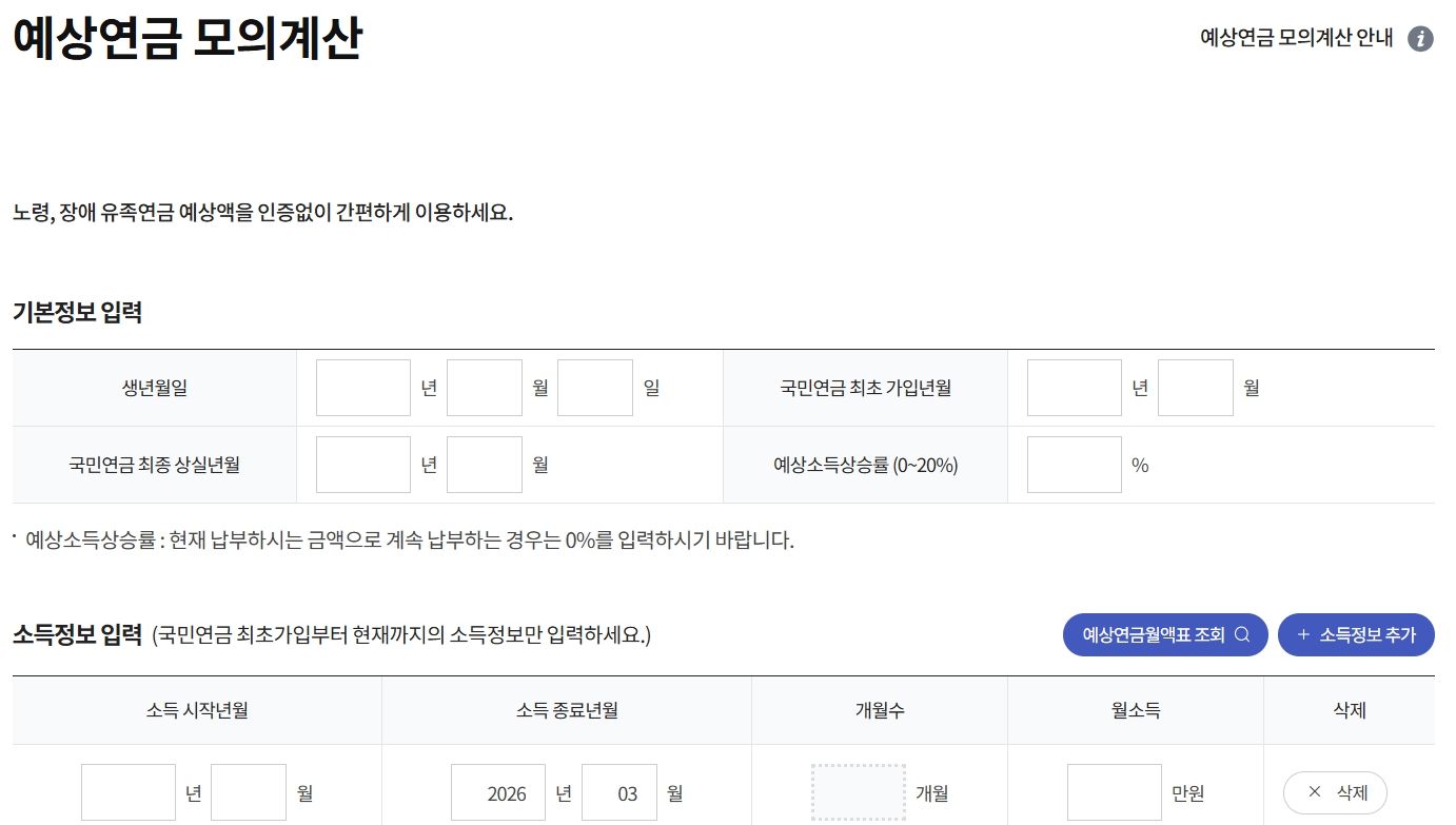 | 최대 장점 | 가장 세분화된 공식 결과 (정확도 최고) | 인증 없이 국민연금 예상액과 연동 가능 |