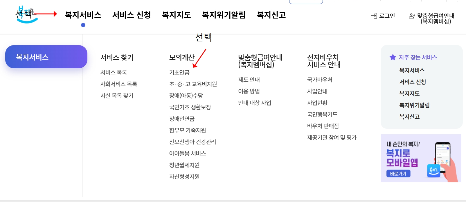 3. 내 상황에 딱 맞는 기초연금 모의계산기 선택