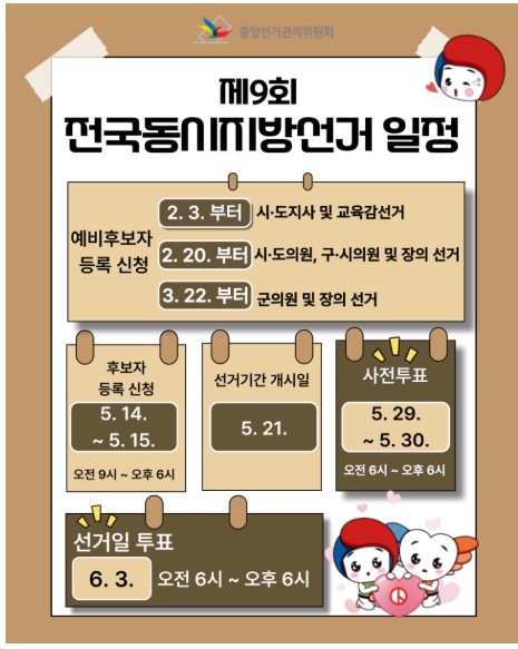 안녕하세요! 2026년 6월 3일 실시되는 제9회 전국동시지방선거가 다가오고 있습니다.