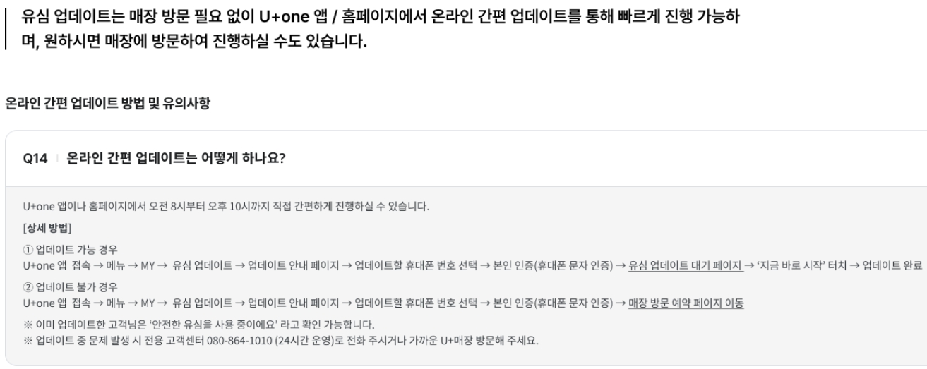 - 온라인 간편 업데이트: [U+one] 앱 또는 공식 홈페이지 접속 (오전 8시~오후 10시 가능)