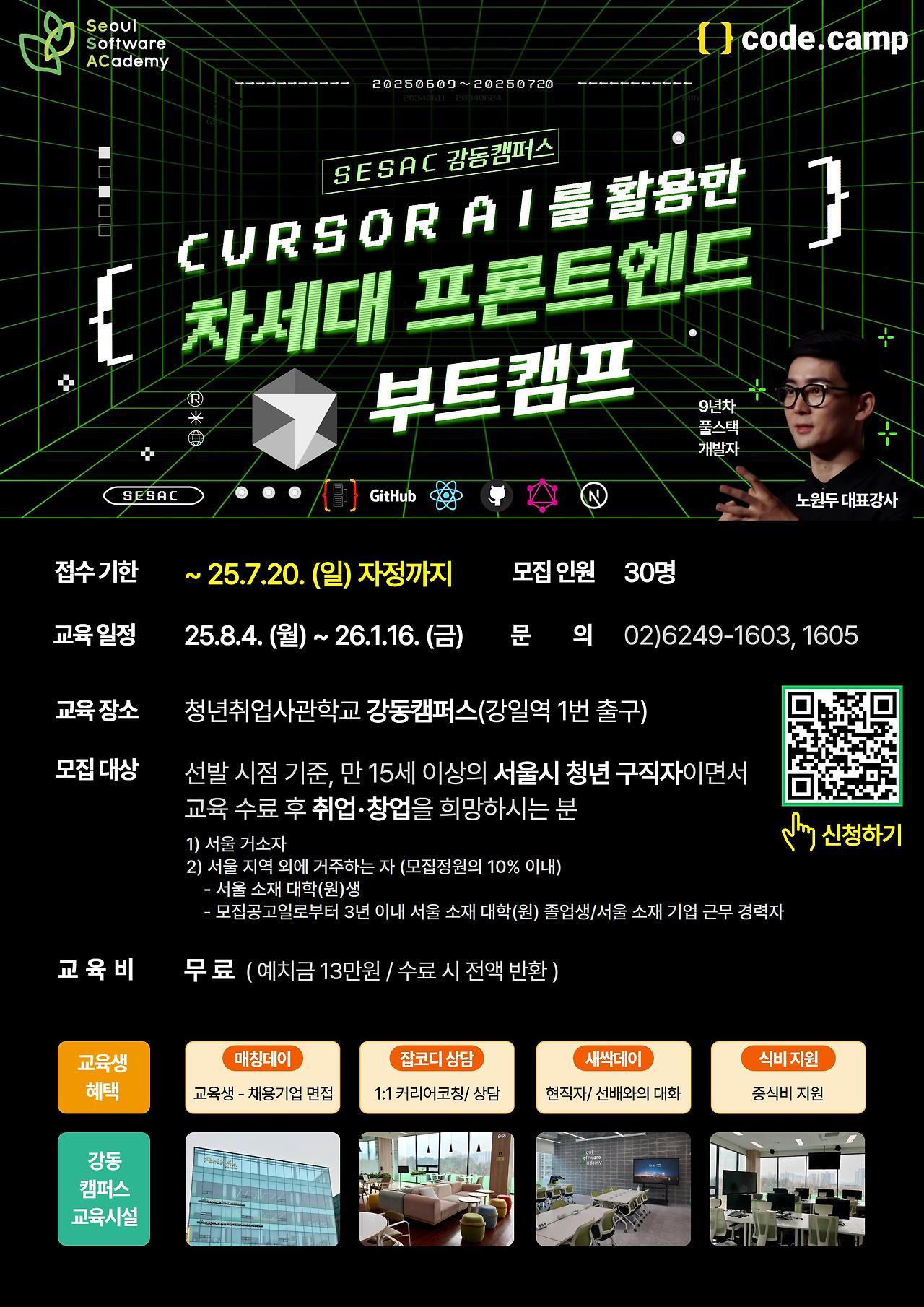 새싹(SeSAC) 강동캠퍼스 SW 4기 교육생 모집( Cursor AI를 활용한 차세대 프론트엔드 부트캠프 / 딩코