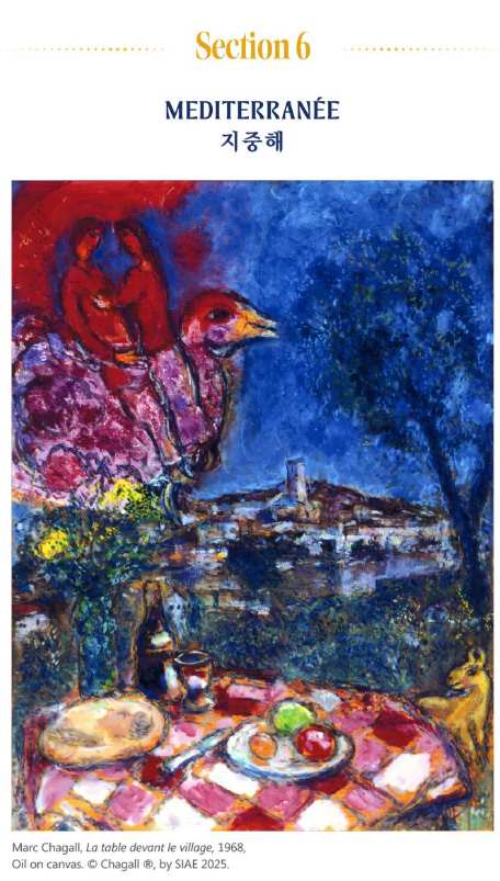 지중해의 빛과 같은 풍경은 샤갈에게 색과 형태를 자유롭게 탐구할 수 있는 영감을 주었습니다.