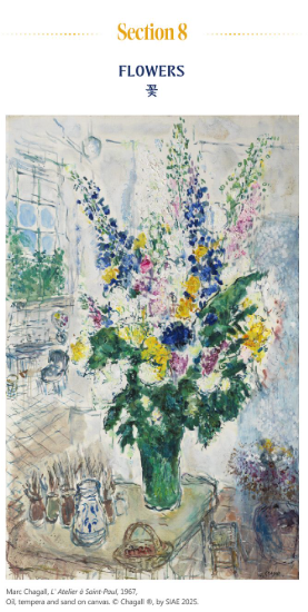 샤갈의 꽃들은 혹시 작가 자신의 초창일지도 모릅니다. 샤갈 작품에 등장하는 꽃다발은 단지 장식적 요소가 아니라 현실과