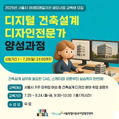 교육대상 : 서울시에 거주하는 디지털 건축설계 디자인 분야에 취업을 희망하는 미취업 여성
