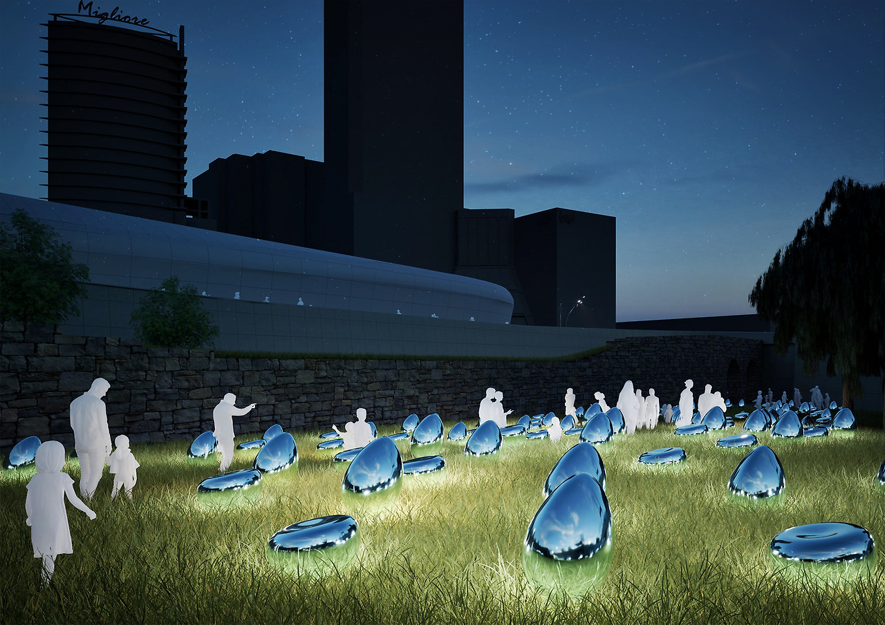 생명의 에너지를 표현한 물방울 형태의 LED 조형물 |