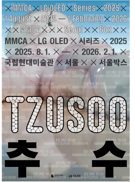 2025년 8월 1일부터 2026년 2월 1일까지, **국립현대미술관 서울관 지하 1층 ‘서울박스’**에서는 MMCA × LG OLED 시리즈의 첫 번째 전시로 추수(TZUSOO) 작가의 개인전 **«아가몬 대백과: 외부 유출본»**이 개최됩니다. 이 전시는 현대미술과 OLED 디지털 기술이 만나 새로운 예술적 가능성을 제시하는 미래지향적 협업 프로젝트입니다.