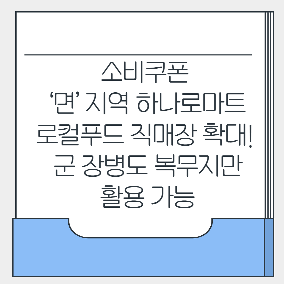- ‘면’ 지역 주민들을 위해 658개 하나로마트와 230개 로컬푸드 직매장이 소비쿠폰 사용처로 추가되었습니다.