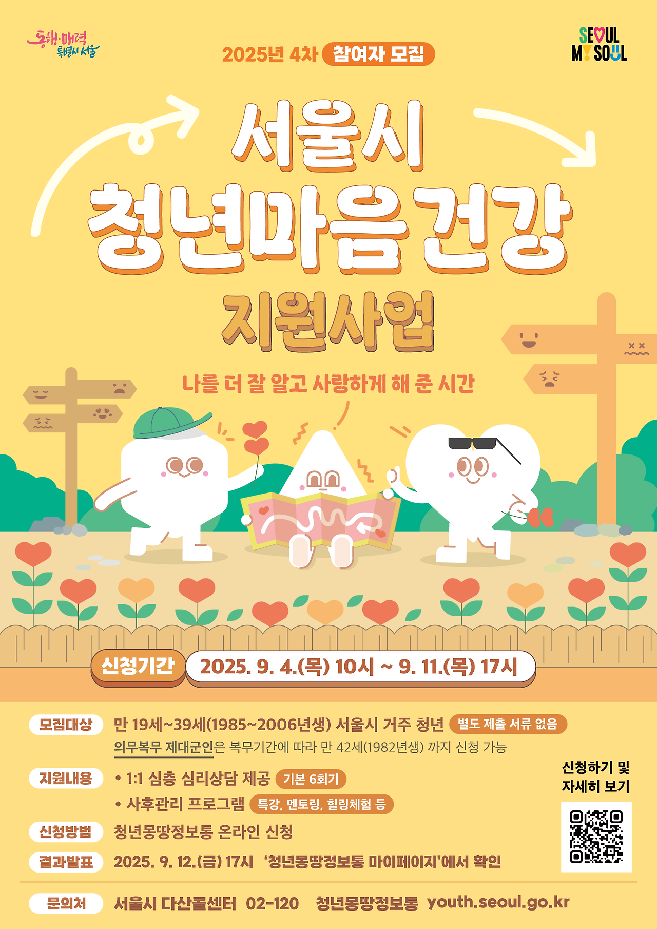 2025년 서울시 청년 마음건강 지원사업 4차 모집 시작 🎉
