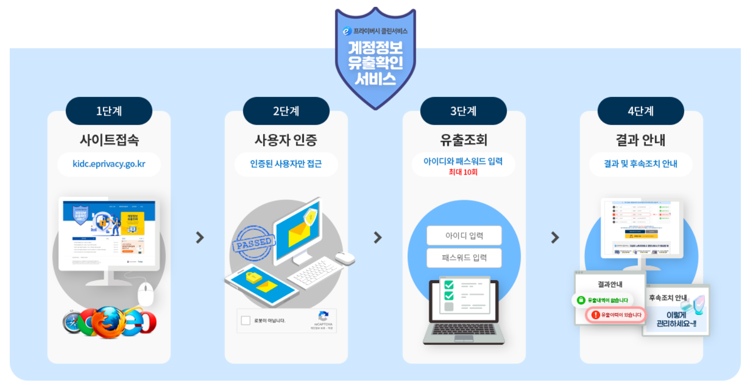 👉 https://kidc.eprivacy.go.kr - ‘유출여부 조회하기’ 클릭