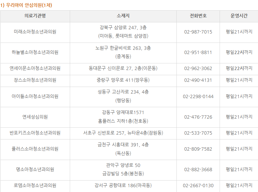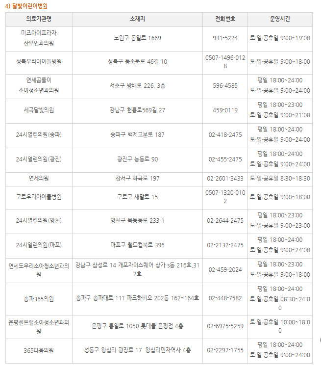 소아 대상 야간 휴일 적정진료