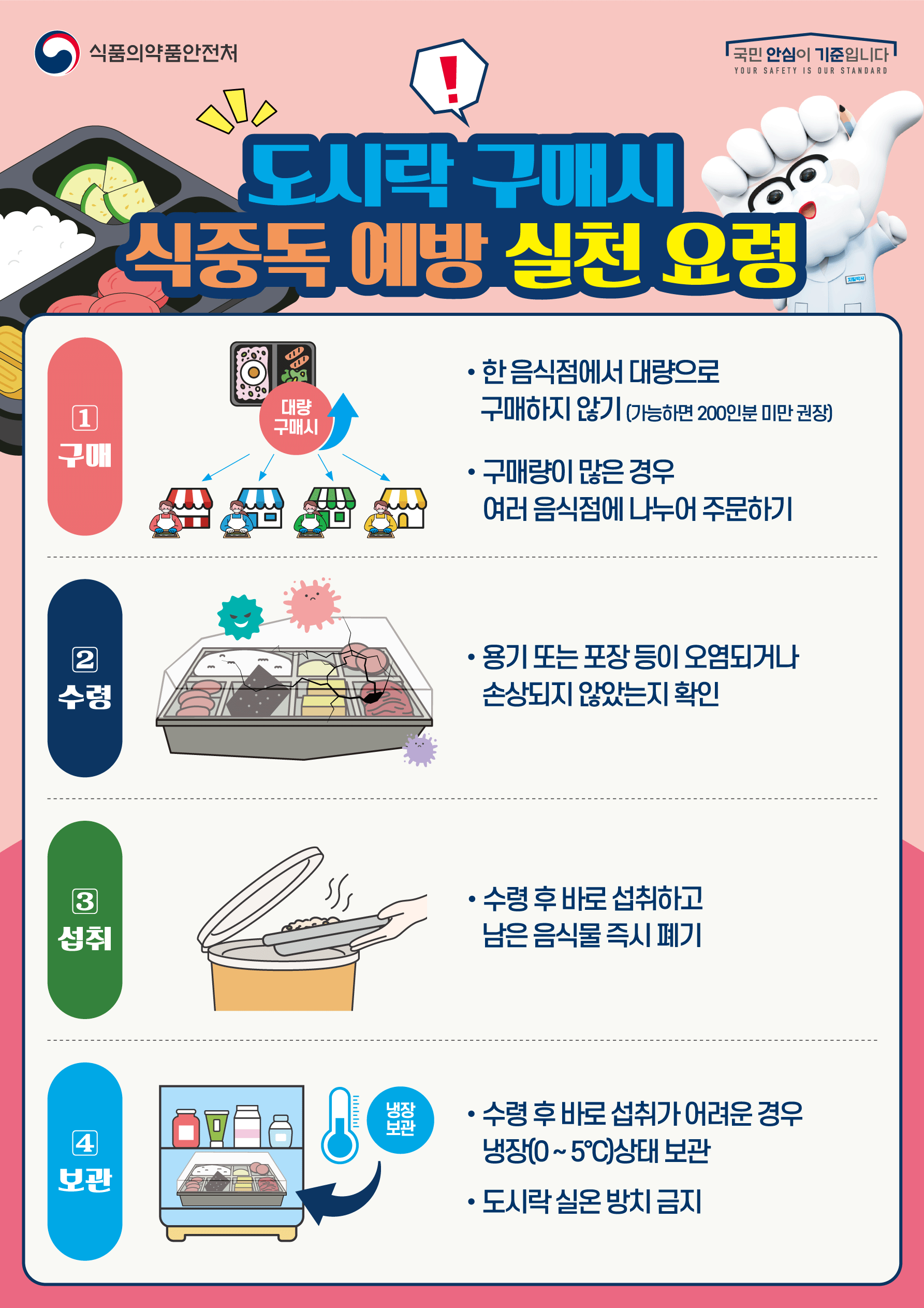 도시락을 싸거나 외부에서 구매할 경우, 식중독 예방수칙 ‘손보구가세’ 꼭 기억하시고요.