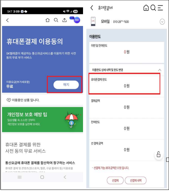 2. 소액결제 한도 축소 및 차단