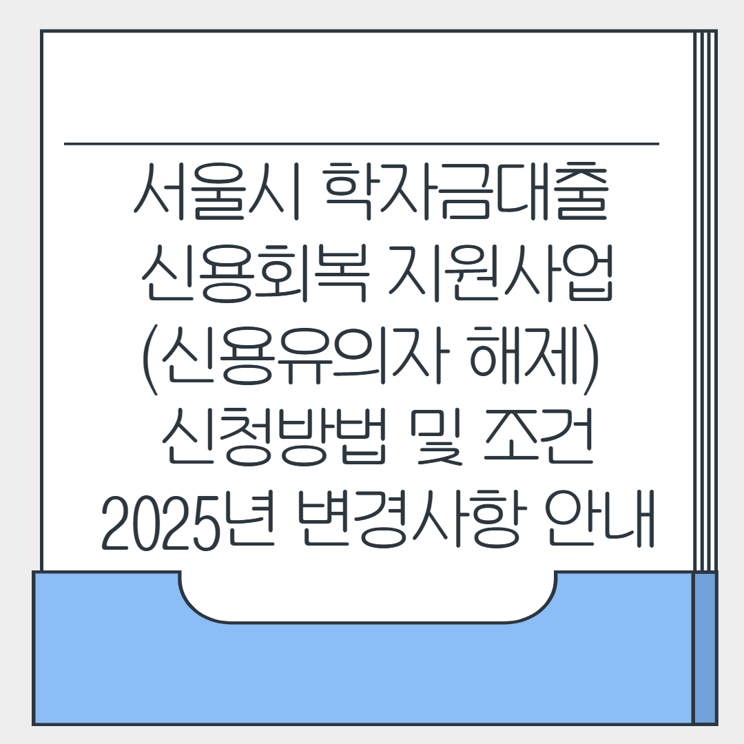 서울시는 학자금 대출 연체로 인해 신용유의자가 된 청년들이 다시 금융거래를 정상적으로 할 수 있도록 돕는 **「학자금대출 신용회복(신용유의자 해제) 지원사업」**을 시행하고 있습니다.