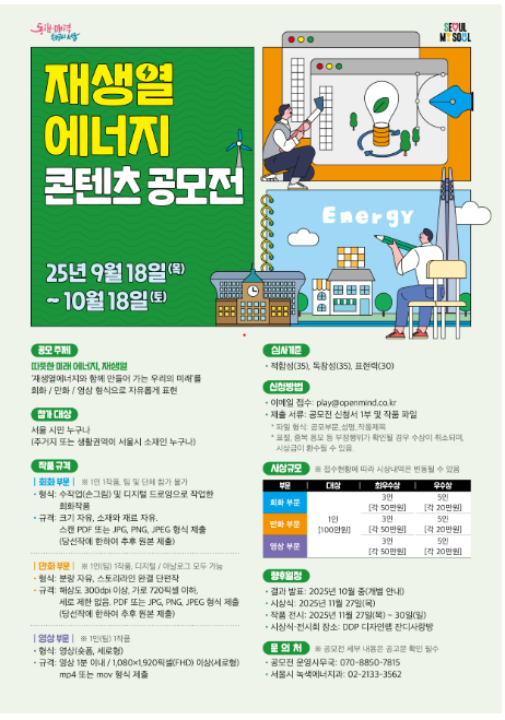 - 공모명 : 2025 서울시 재생열 에너지 콘텐츠 공모전