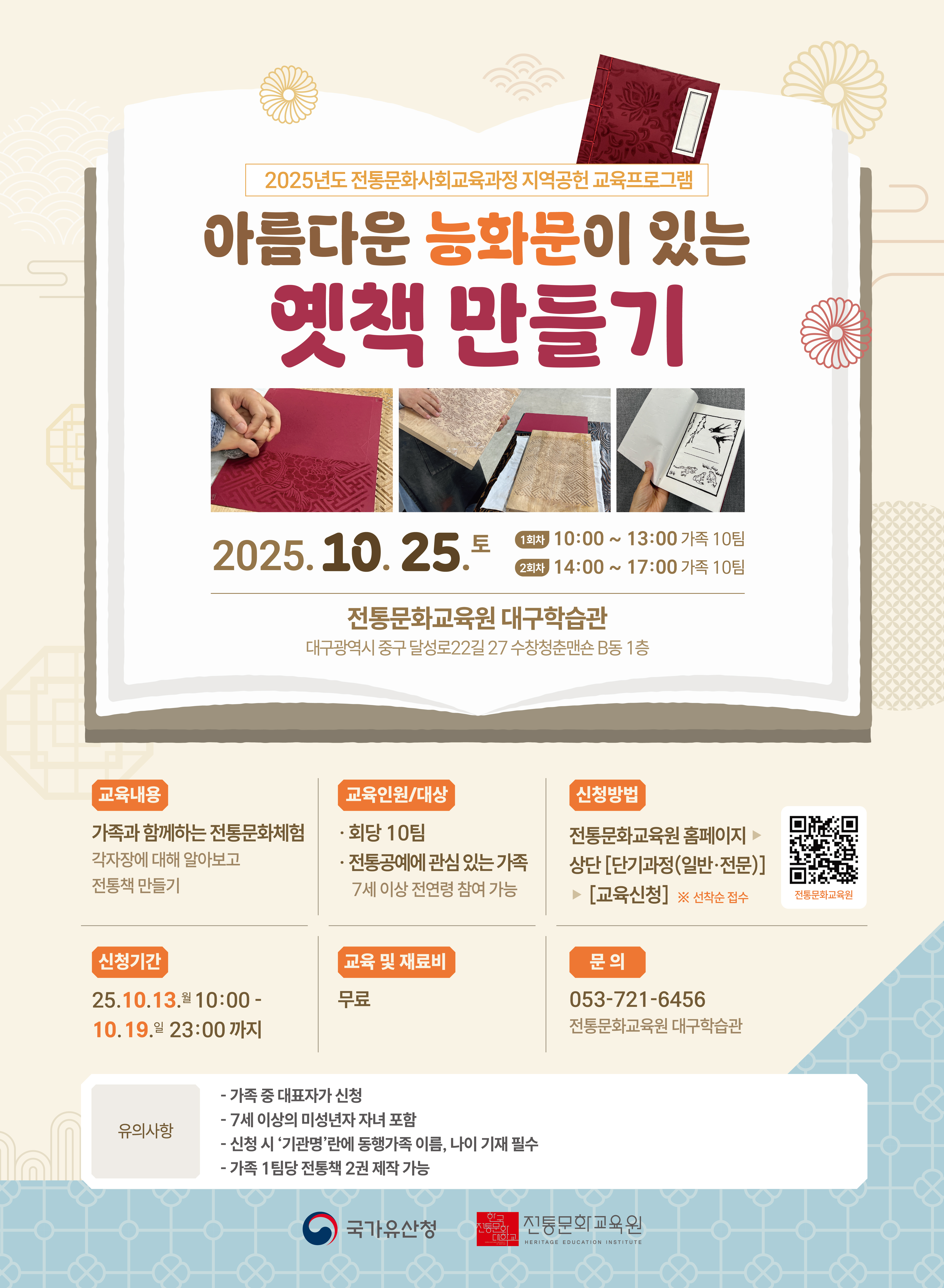 | 교육명 | 아름다운 능화문이 있는 옛책 만들기 |