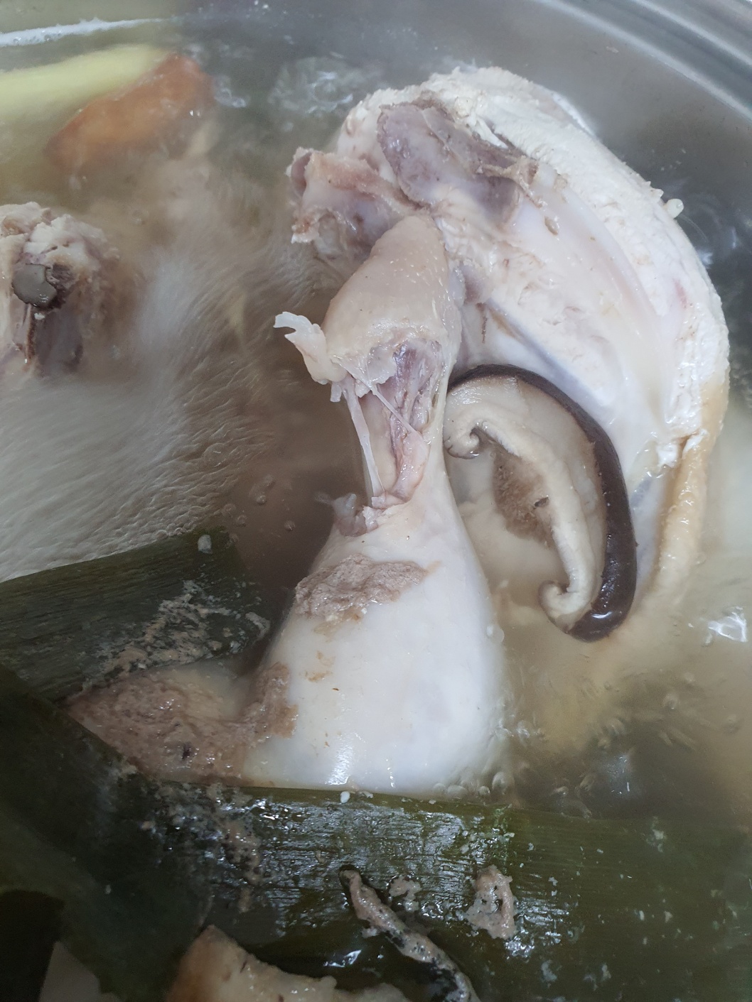 이렇게 찾아서 낸 재료를 깨끗하게 세척해서 끓이면 백숙입니다.