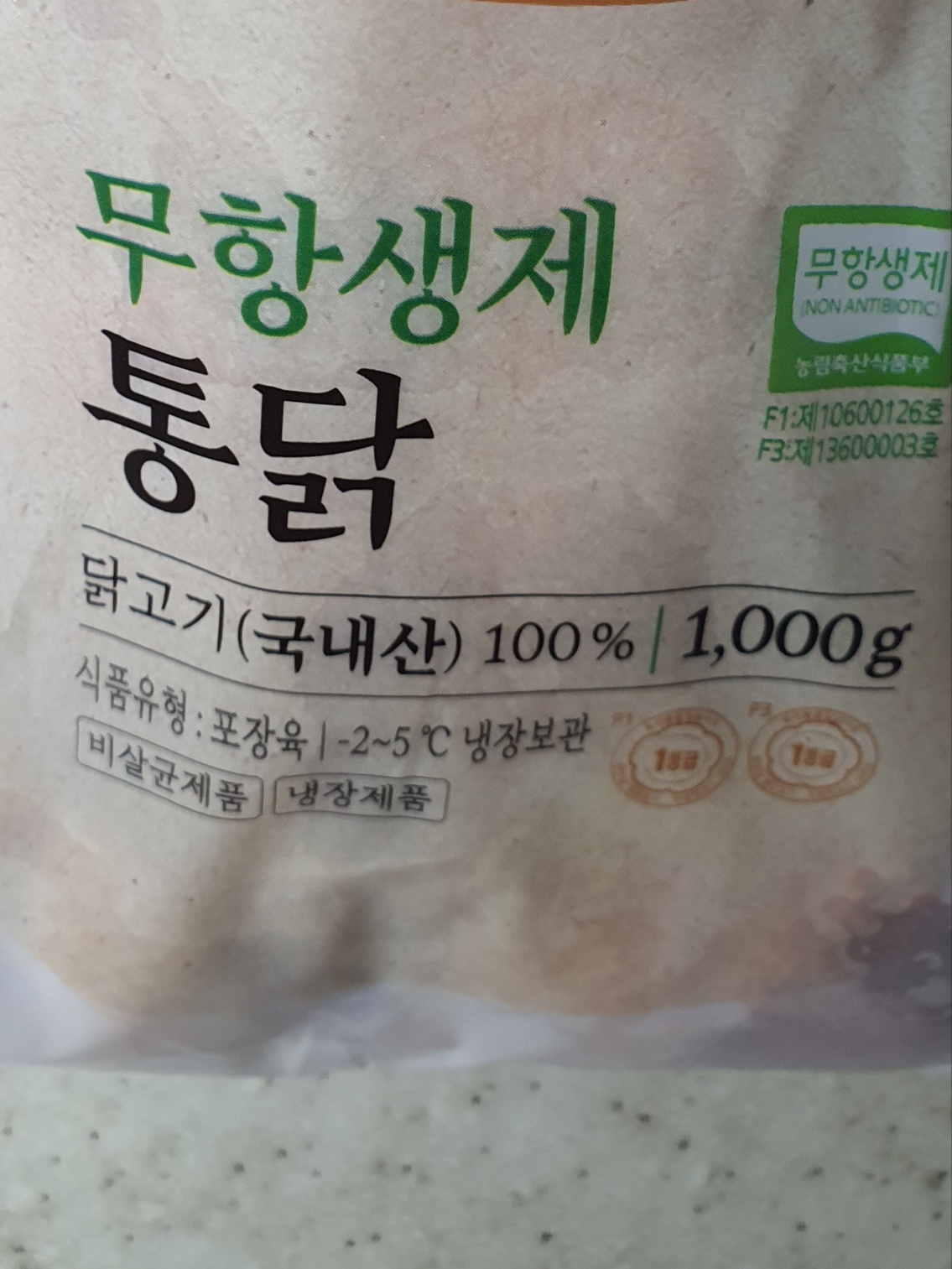 - 무항생제 닭 1kg 인당 1마리