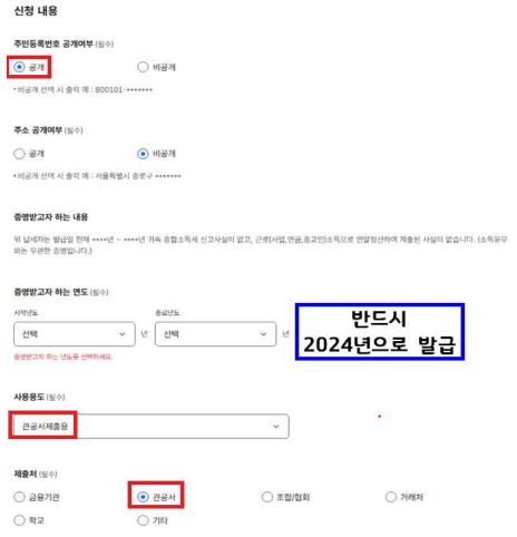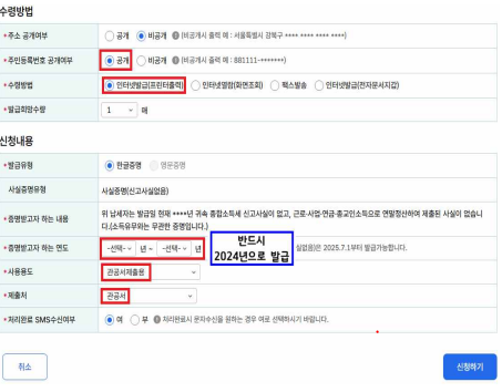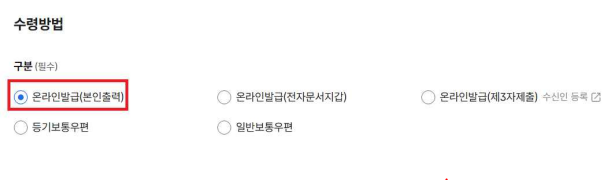 - 공동인증서 또는 간편인증으로 본인인증 후 발급