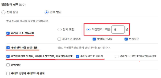 - “주소변동 포함 (최근 5년)”