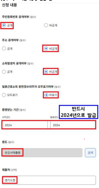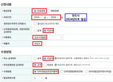- 본인인증 후 “2024년도 귀속” 선택