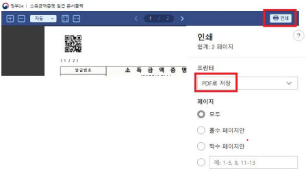 - 주민등록번호 전체 공개 설정 → PDF 저장