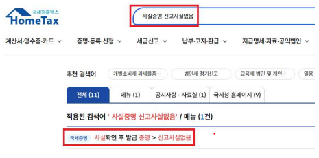 - 검색창에 “사실증명 신고사실없음” 입력
