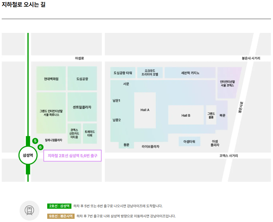 - 장소 : 서울 강남구 영동대로 511 (삼성동), 삼성역 5·6번 출구 인근