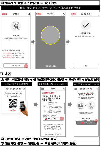 → 안면인증 + 신분증 진위 확인 → 본인인증 → 개통