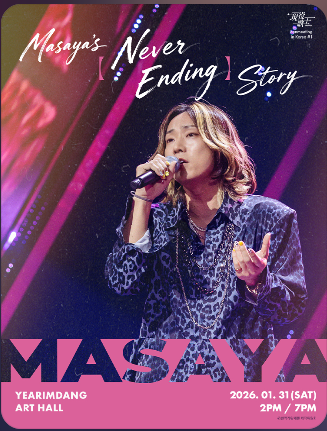 마사야(Masaya) 1st 한국 팬미팅 〈Never Ending〉 Story는 한국 팬들을 위해 준비한 노래와 이야기로 구성된 팬미팅입니다. <현역가왕 재팬>을 통해 감성적인 보컬과 진정성 있는 무대로 주목받은 마사야는 이번 팬미팅에서 자신의 음악과 마음을 직접 전하는 시간을 가질 예정입니다.
