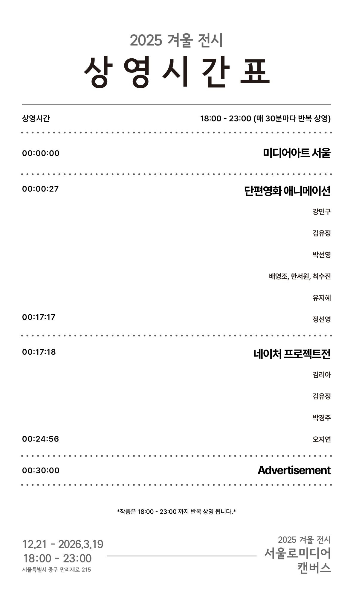 → 서울로미디어캔버스 운영 일정에 따라 상영