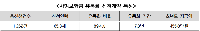 사망보험금 유동화가 새로운 노후소득 보완 수단으로 활용되고 있음을 보여줍니다.