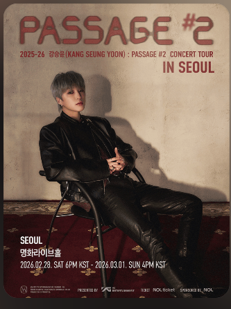 WINNER 강승윤의 단독 콘서트 투어 **〈2025-26 강승윤(KANGSEUNGYOON) : PASSAGE #2 CONCERT TOUR IN SEOUL〉**이 2026년 2월 말, 서울 명화라이브홀에서 개최됩니다.