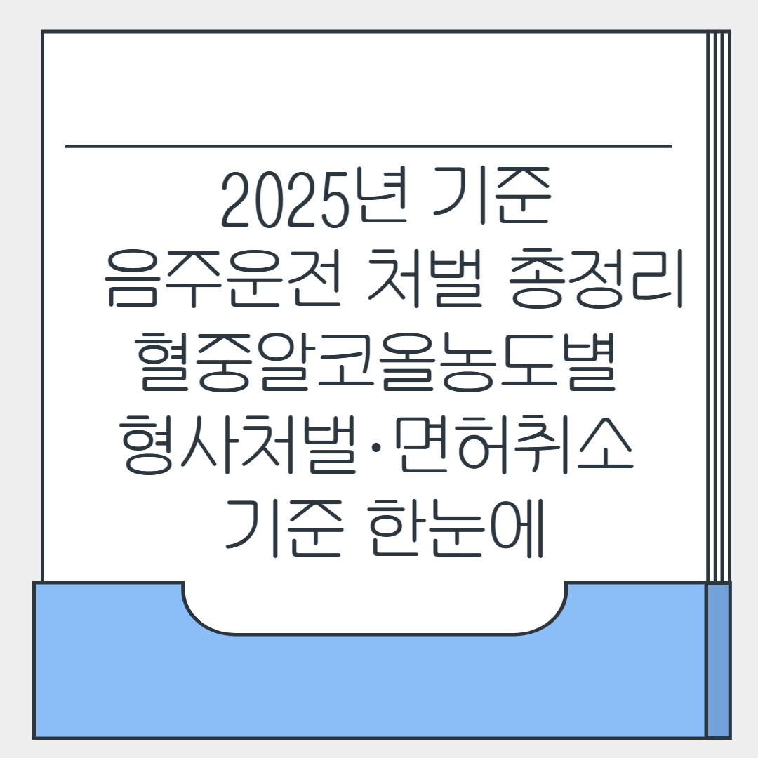 이번 글에서는 2025년 기준 음주운전 형사처벌 수위와 운전면허 취소·정지 기준을 혈중알코올농도와 위반 횟수별로 정리한다.
